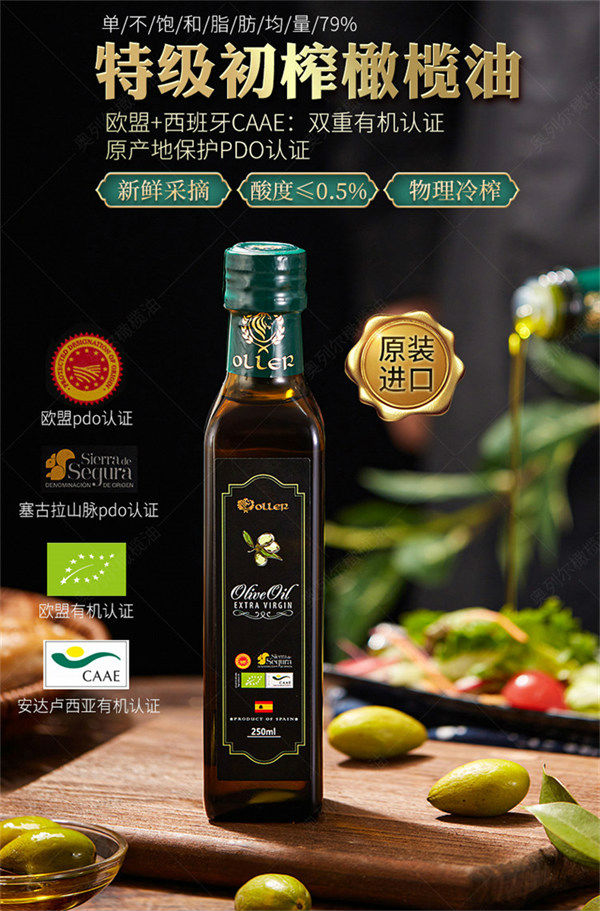 奥列尔欧盟有机PDO认证特级初榨橄榄油250ml