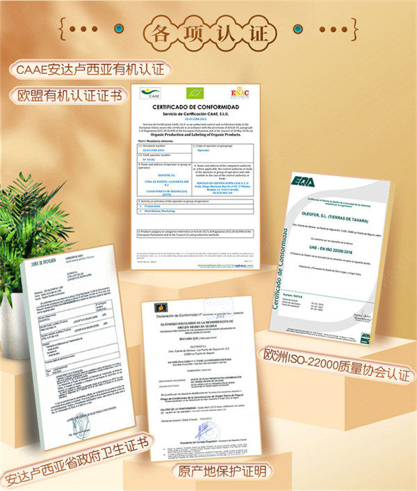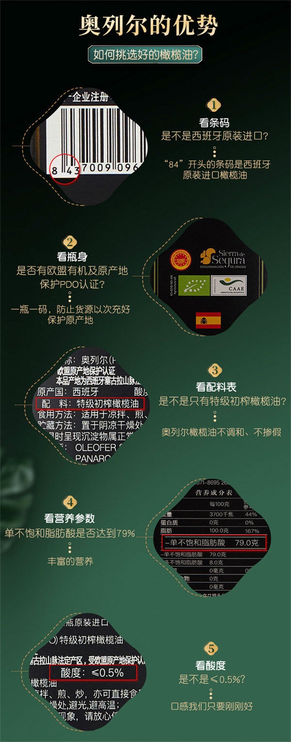 奥列尔欧盟有机PDO认证特级初榨橄榄油500ml