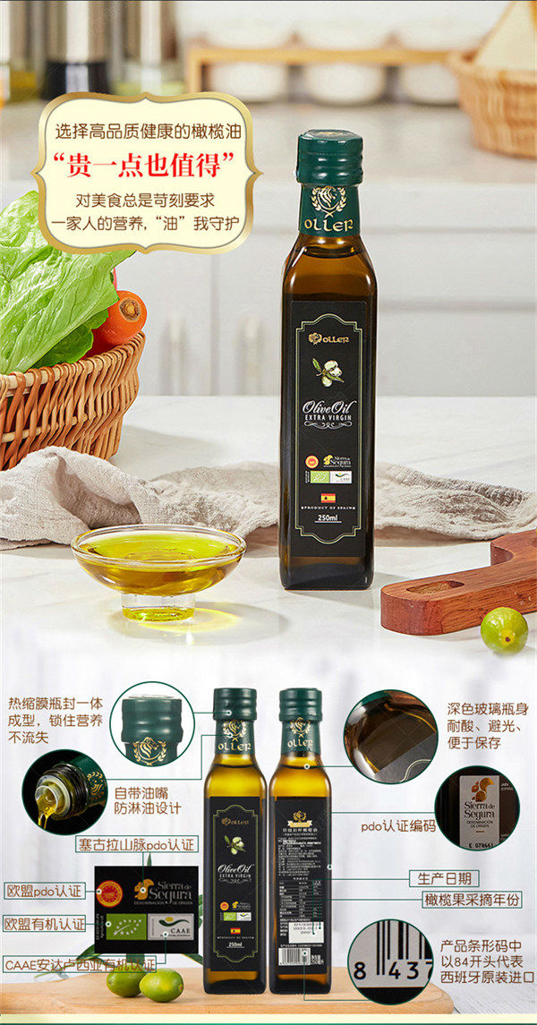 奥列尔欧盟有机PDO认证特级初榨橄榄油750ml
